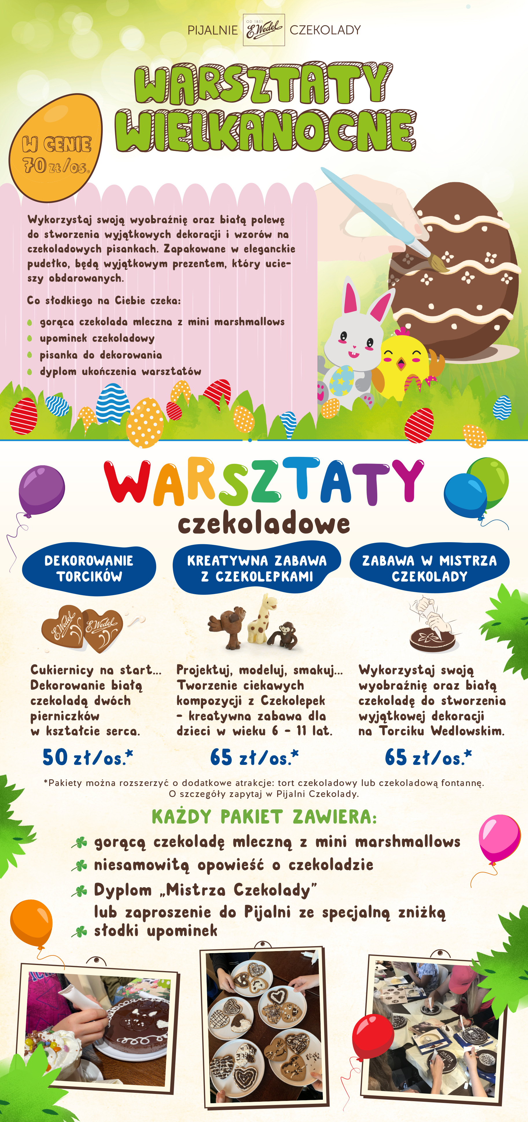 Zależy nam, aby każde dziecko mogło spróbować tego samodzielnie, wchodząc w rolę prawdziwego mistrza czekolady. Uczestników warsztatów czeka mnóstwo frajdy i zabawy podczas tworzenia własnych słodkości.